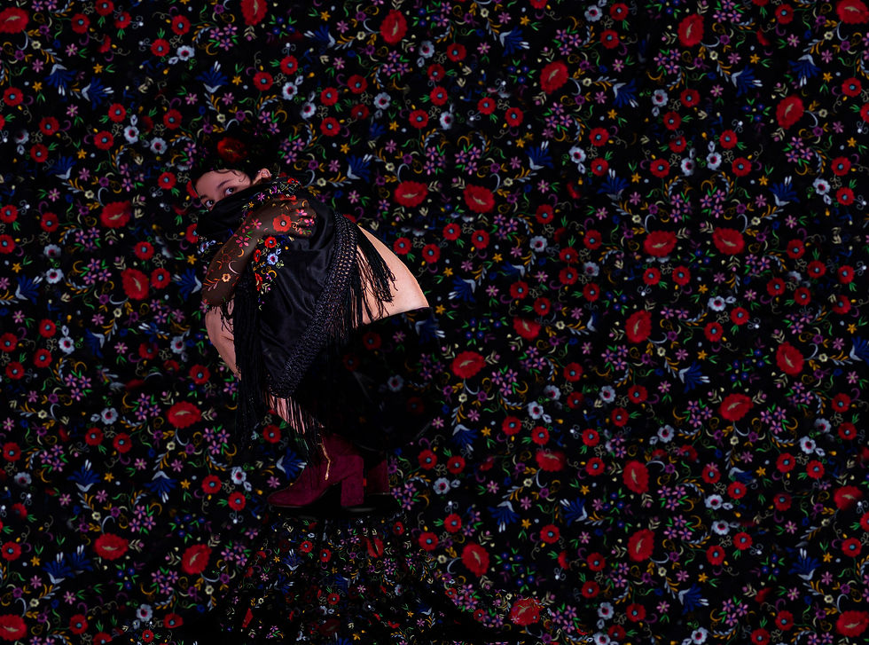 El proyecto que abordo trata de poner sobre la mesa cuestiones acerca de cómo el entorno afecta al ser humano y a sus relaciones con el medio, tanto cultural como social. Las pinceladas románticas y sensuales, así como una fragilidad latente, dotan a toda la obra de una gran fuerza femenina. A través de la edición fotográfica se busca la mímesis en cada una de las imágenes, evocando el camuflaje, tal y como lo haría un soldado o un animal para sobrevivir a la guerra o a la naturaleza. A lo largo de la obra, veremos tanto pañuelos como mantones extremeños en pos de buscar ese sentido identitario. Así mismo, encontraremos otro tipo de telas, en concreto, pañuelos prestados por integrantes femeninas de mi entorno familiar. Simples telas que en su humildad se han utilizado durante meses para cubrir su propio cuerpo o sus cabezas tras duros procesos de vulnerabilidad y lucha contra el cáncer. En el proyecto muestro autorretratos de desnudo, desde la propia fragilidad de esta condición empleo fragmentos de mi propio cuerpo confundiendo estos con el entorno. La obra se apoya en metáforas y símbolos pasados vistos de nuevo punto en el presente, de esta forma, trato temas como la búsqueda de mis propios orígenes y la introspección del verdadero “yo” que se oculta tras el sistema social y cultural que engloba nuestras vidas. Busco, a través de la estética, invitar al espectador a adentrarse y a dar su opinión sobre la imprescindible necesidad de recuperar la ética, la justicia, la cordura y la belleza en todos sus actos así como, por ende, incorporar estas urgentemente a todas nuestras relaciones sociales.